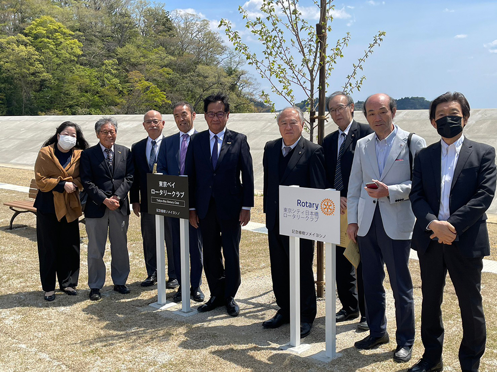 南三陸ハマーレ広場開設に伴いソメイヨシノ15本を日本橋シティロータリークラブと共同で記念植樹実施。長きに亘る支援の証になりました。