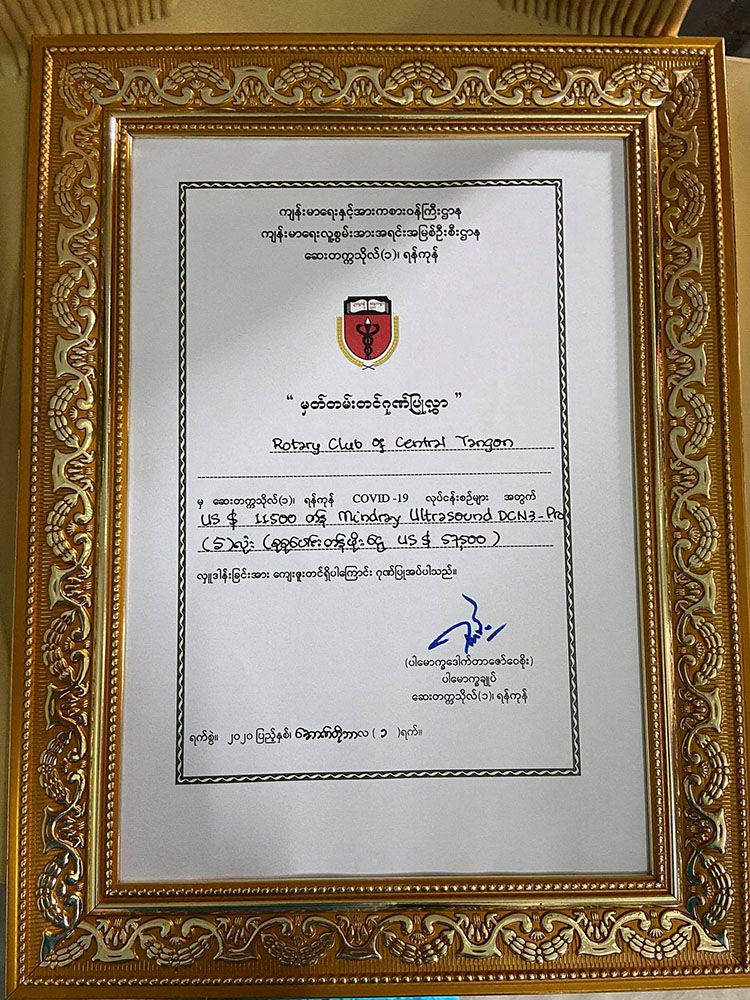 ヤンゴン市内(ミャンマー)の官立病院へ超音波診察機5台を寄贈